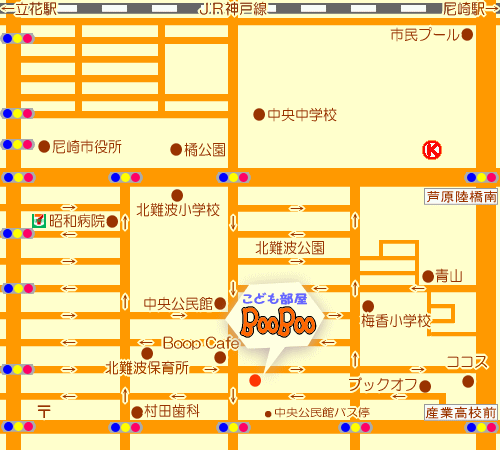 - JR立花駅・尼崎市役所方面からお越しの方は、中央中学校と橘公園の間の筋を2号線方面へ、中央公民館の筋から2筋目を左に入ってスグ